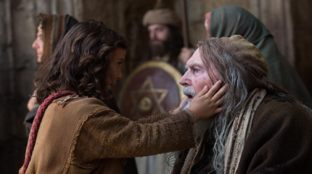 Jesus (Adam Greaves-Neal) é encontrado pelo Centurião romano ‘Severus’ (Sean Bean ) no templo e corre perigo._Foto: Divulgação