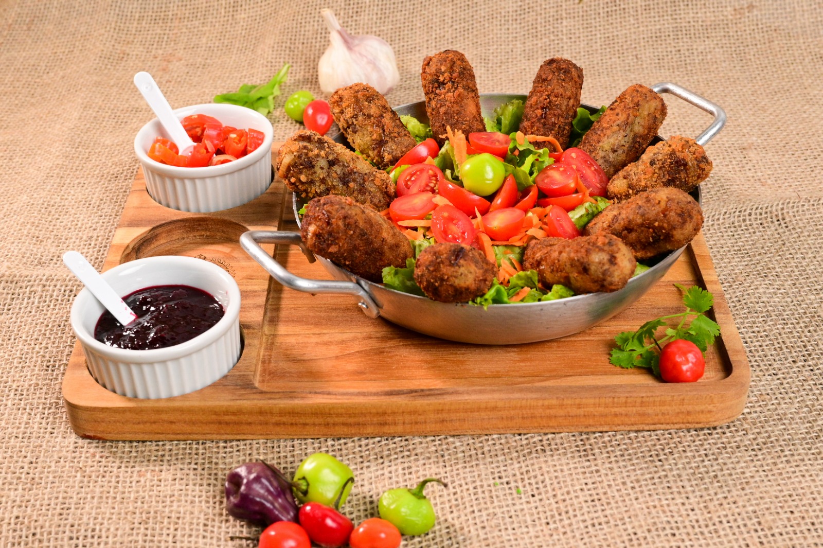 Petisco participante – Pastéis do Jack  (Mini pastéis de costela com queijo, tomate seco e rúcula, acompanhados de geleia de pimenta e vinagrete)